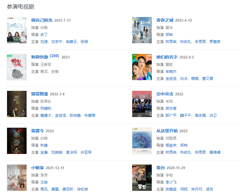 2021年,主演的諜戰(zhàn)題材電影《懸崖之上》上映;同年,主演的家庭倫理劇《小敏家》播出。