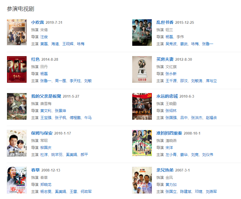 代表作品:陽(yáng)光燦爛的日子、春光燦爛豬八戒、黑眼睛、美麗新世界、空鏡子、漢武大帝、亂世書(shū)香、紅色、小歡喜