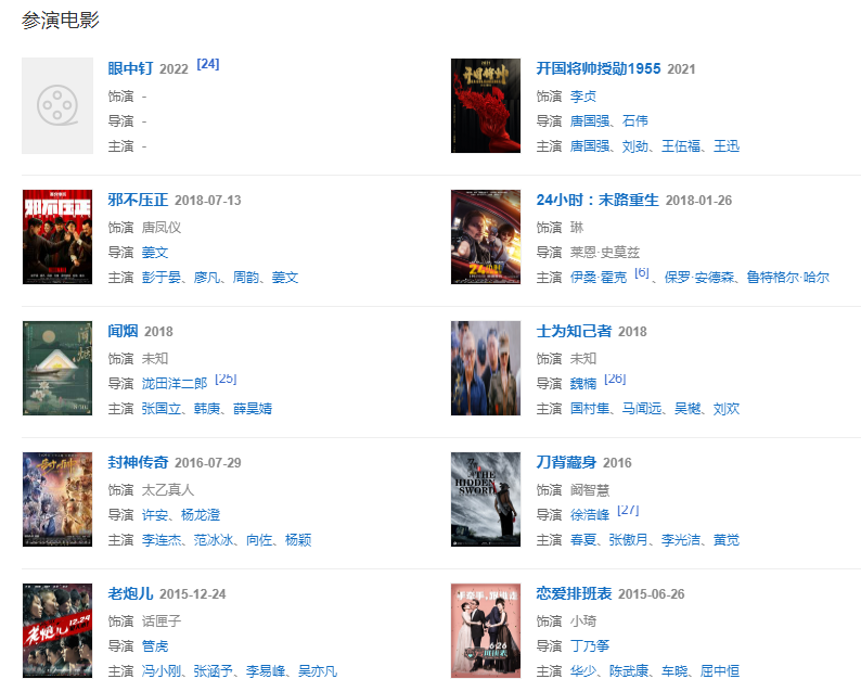 2020年,參演唐國(guó)強(qiáng)、石偉執(zhí)導(dǎo)的《開(kāi)國(guó)將帥授勛1955》。