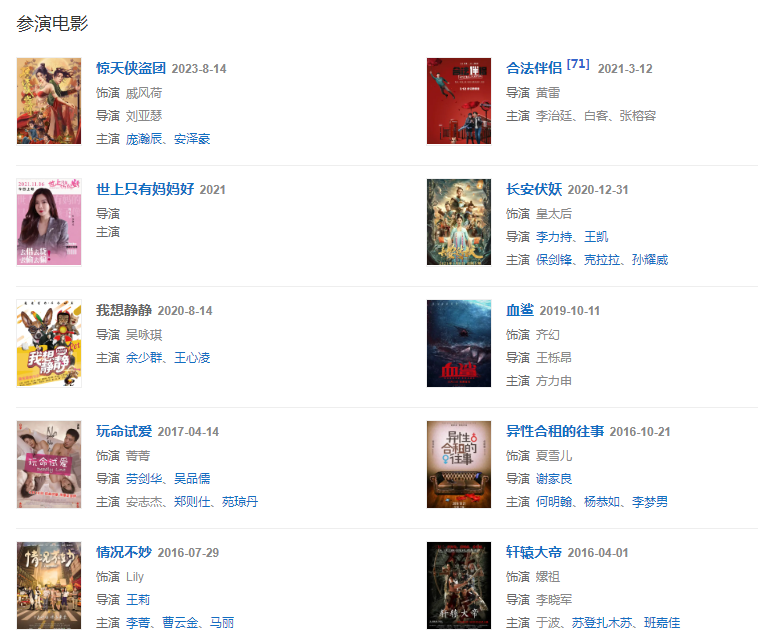 2020年3月,與李治廷、白客主演電影《合法伴侶》定檔3月13日。