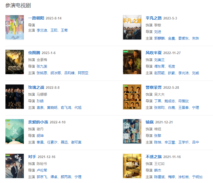 2021年8月18日,參演的古裝電視劇《周生如故》播出;9月9日,參演的電視劇《雙探》播出;11月16日,其主演的電視劇《不惑之旅》在浙江衛(wèi)視播出 ;12月16日,特別出演的當(dāng)代都市諜戰(zhàn)劇《對(duì)手》在央視八套播出;參演電視劇《輸贏》。