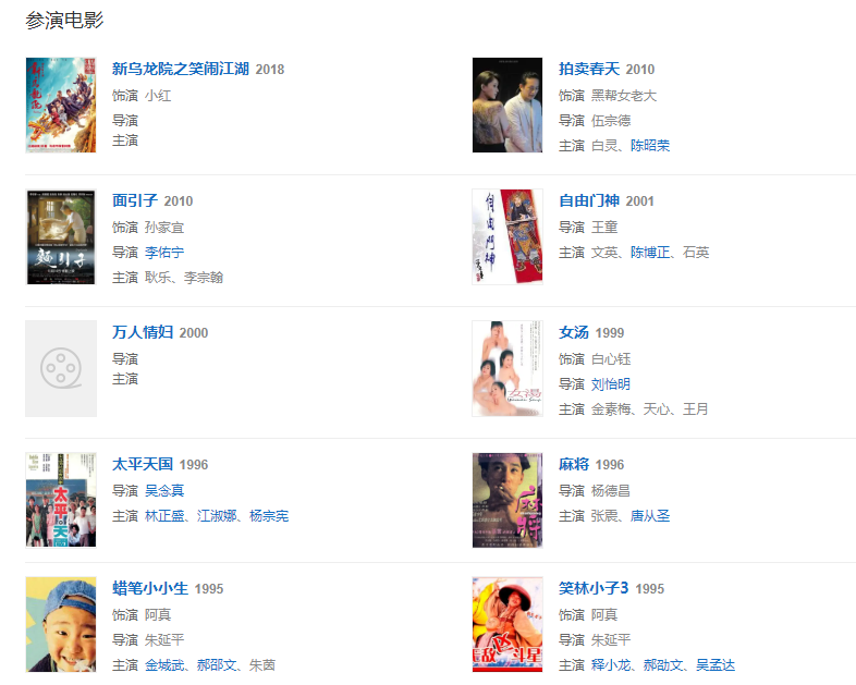1995年,主演朱延平執(zhí)導(dǎo)的動(dòng)作類影片《中國(guó)龍》,同年,主演朱延平執(zhí)導(dǎo)的喜劇動(dòng)作類影片《逃學(xué)戰(zhàn)警》,同年,主演朱延平執(zhí)導(dǎo)的動(dòng)作喜劇類影片《笑林小子3》。