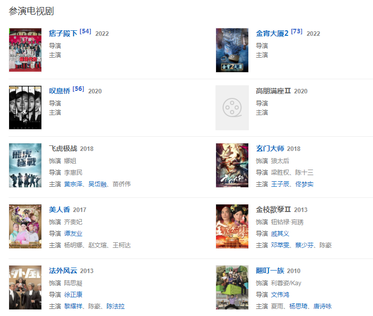代表作品:銀狐、豪門(mén)、戲王之王、天地男兒、大唐雙龍傳、勝者為王Ⅲ王者之戰(zhàn)、金枝欲孽2、緣來(lái)自有機(jī)、街市的童話