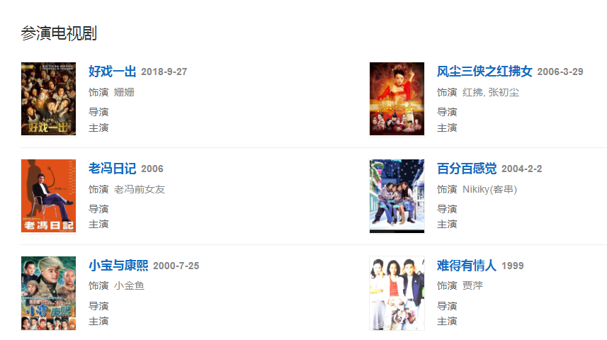 2001年,主演愛情電影《千禧曼波之薔薇的名字》,由此獲第2屆華語電影傳媒大獎最佳女演員提名 。