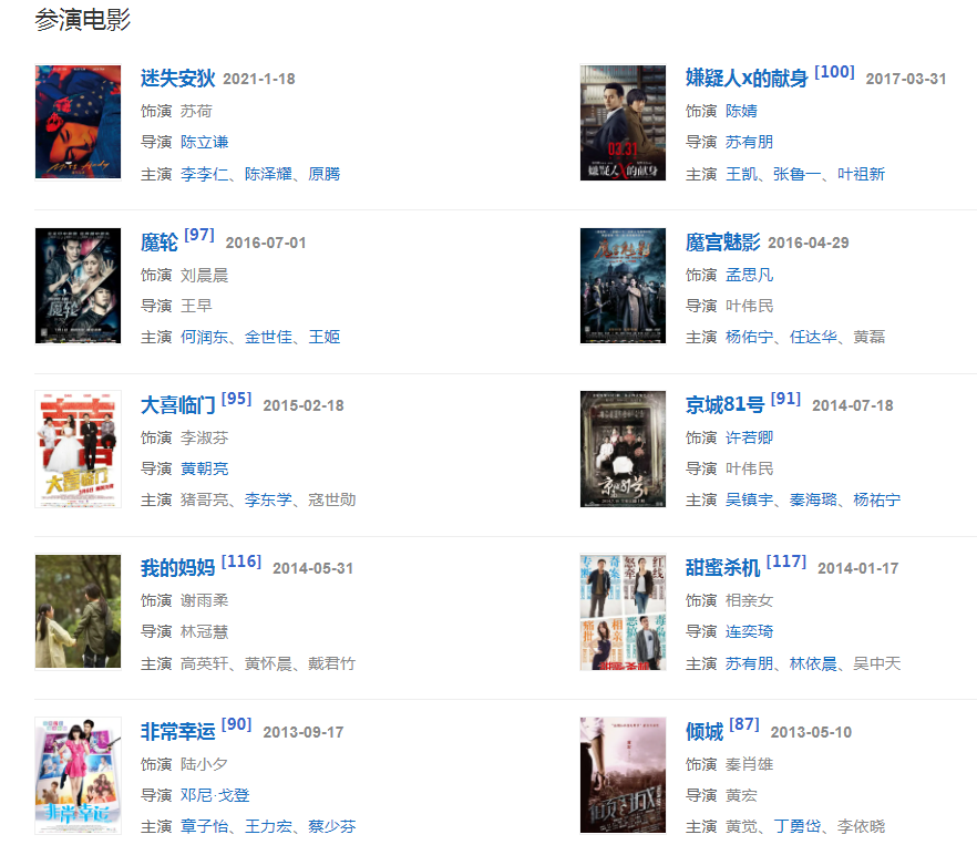 代表作品:還珠格格、情深深雨濛濛、男才女貌、半生緣、美人心計(jì)、16個(gè)夏天、華燈初上