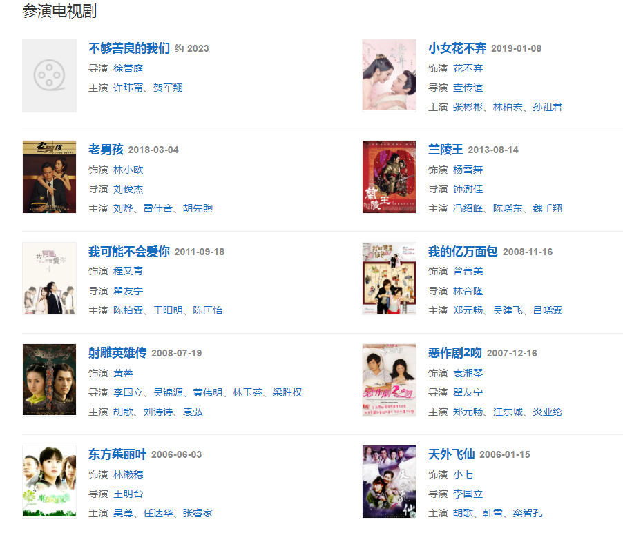 代表作品:惡作劇之吻、我可能不會(huì)愛你、天外飛仙、蘭陵王、射雕英雄傳、東方茱麗葉、老男孩、小女花不棄、孤單北半球、你、非你莫屬