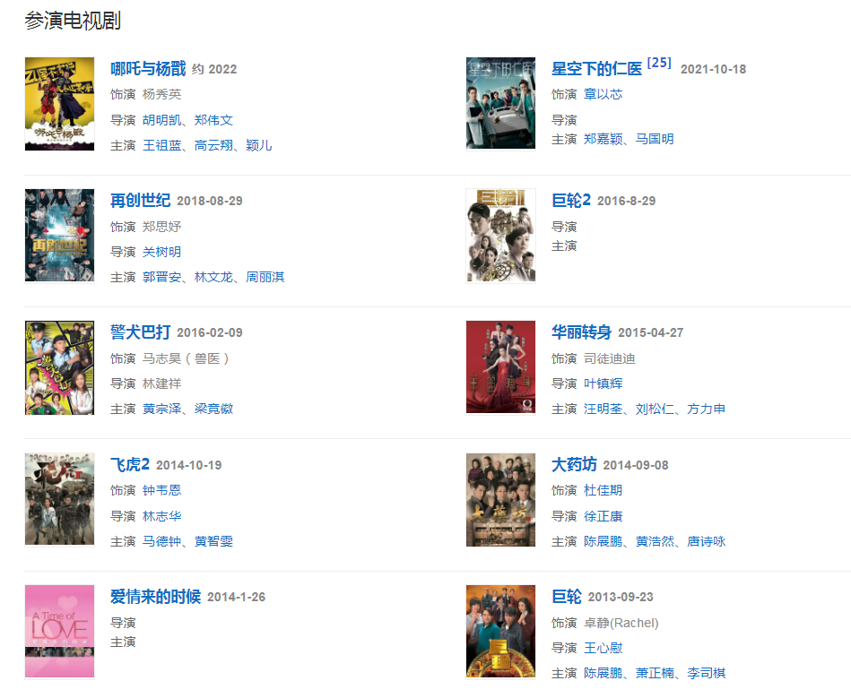 2021年10月,主演的兒科醫(yī)療劇《星空下的仁醫(yī)》作為TVB臺(tái)慶劇播出 。