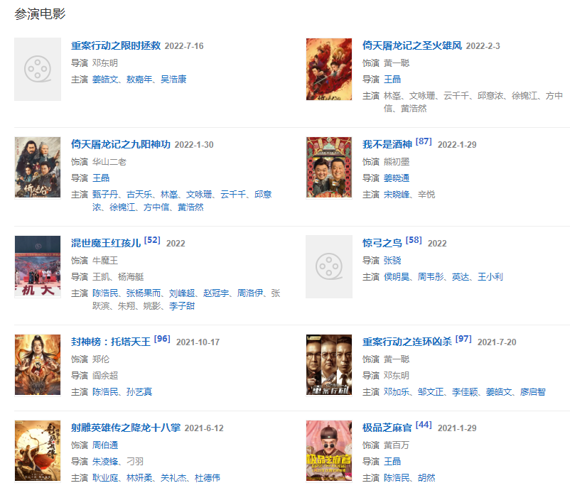 2022年1月29日,與宋曉峰、辛悅領(lǐng)銜主演的喜劇電影《我不是酒神》在優(yōu)酷、愛奇藝視頻同步上映; 參演電影《倚天屠龍記之圣火雄風》。參演電影《倚天屠龍記之九陽神功》。