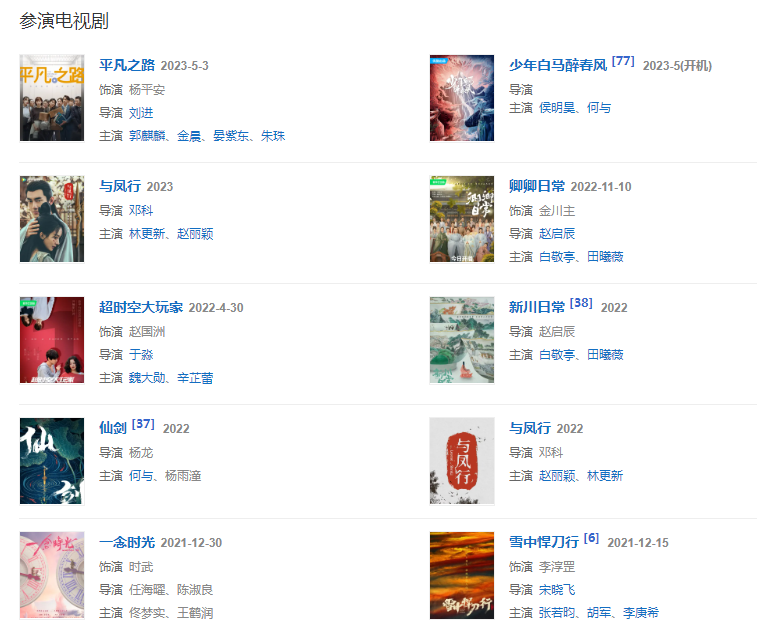 2021年2月5日,參演電視劇《斗羅大陸》播出;12月15日,參演的古裝勵(lì)志劇《雪中悍刀行》播出,在劇中飾演李淳罡;12月30日,參演的都市情感劇《一念時(shí)光》播出。