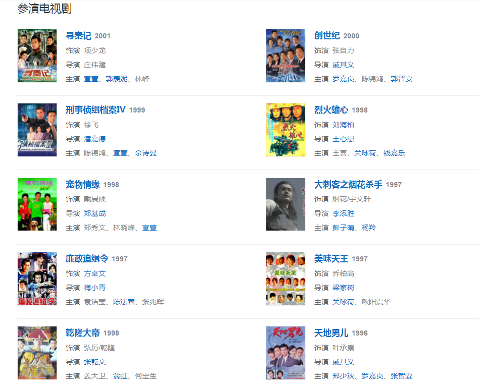 代表作品:神雕俠侶、尋秦記、保持通話、竊聽風(fēng)云、一個(gè)好爸爸、寶貝計(jì)劃、毒戰(zhàn)、掃毒、殺破狼·貪狼、刑事偵緝檔案IV、犯罪現(xiàn)場(chǎng)