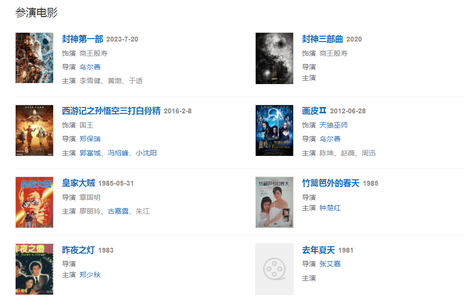 2023年6月29日,參加《2023灣區(qū)升明月大灣區(qū)電影音樂晚會》;7月20日,參演的電影《封神第一部》上映。