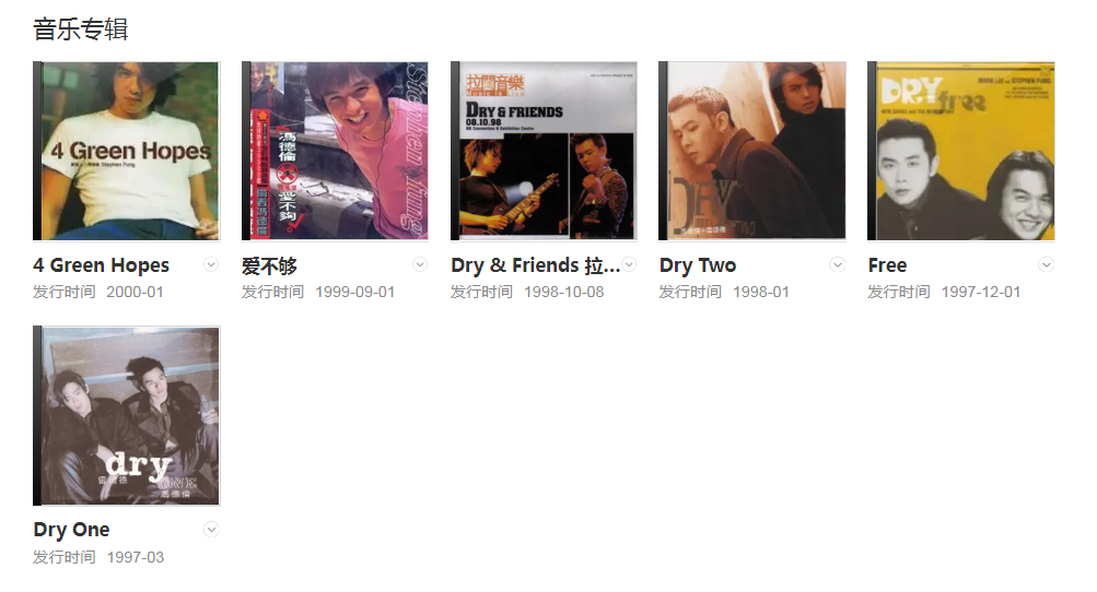 1995年,與雷頌德組成了DRY樂隊(duì)以歌手身份出道;同年在“勁歌金曲”獲得最受歡迎新人銅獎(jiǎng)。