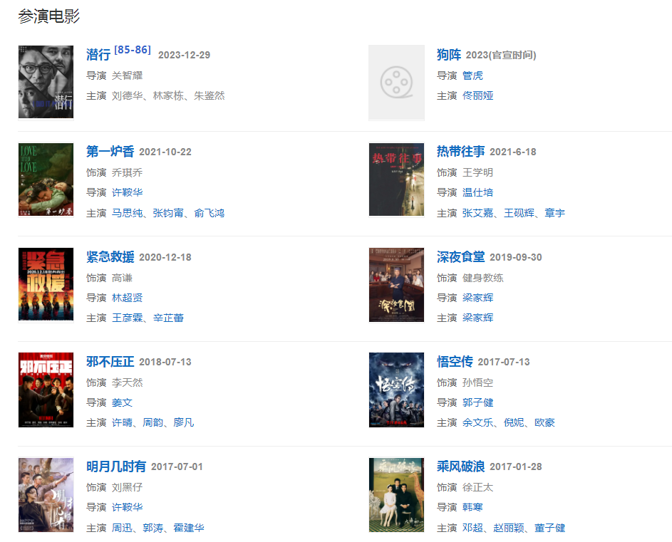 代表作品:翻滾吧!阿信、聽說(shuō)、湄公河行動(dòng)、邪不壓正、激戰(zhàn)、破風(fēng)、乘風(fēng)破浪、悟空傳、匆匆那年、緊急救援