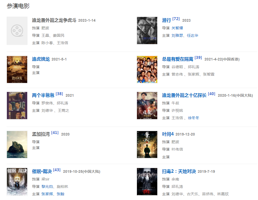 2023年1月14日,出演的動作電影《追龍番外篇之龍爭虎斗》在愛奇藝云影院獨(dú)家上映,在片中飾演肥波。12月29日,參演的電影《潛行》上映。